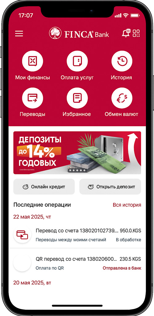 Оформите заявку на нашем сайте или в нашем приложении Finca Mobile, выберите сумму и срок, пройдите идентификацию — и получите деньги на карту.
