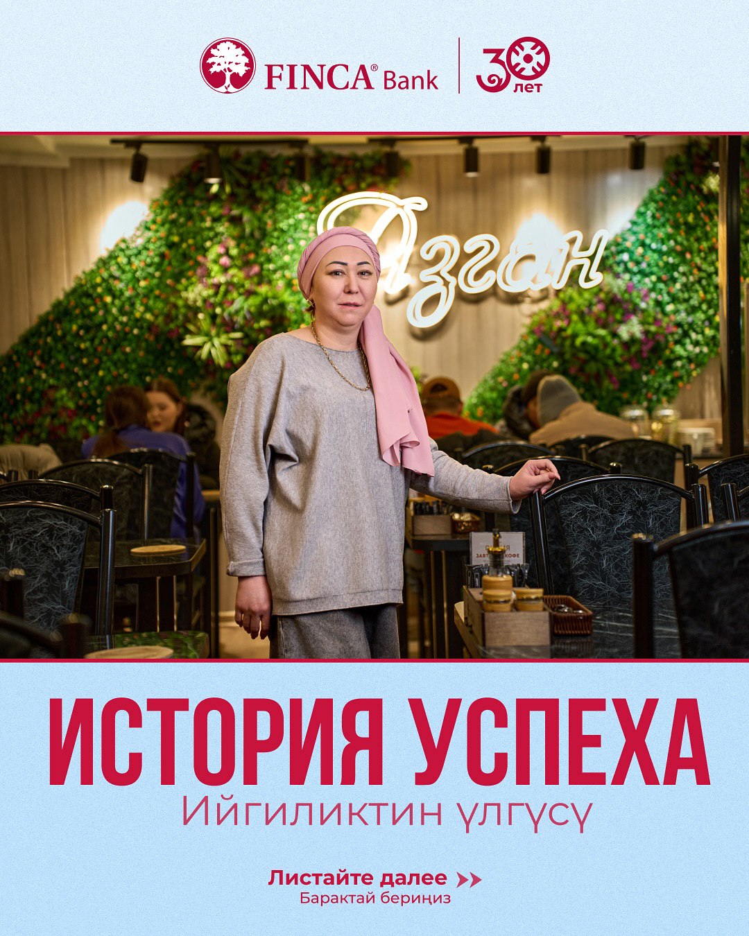 “At FINCA Bank, I feel not only support but also respect. They are always ready to help, inspire, and support me in reaching new goals,” says Gulmira.